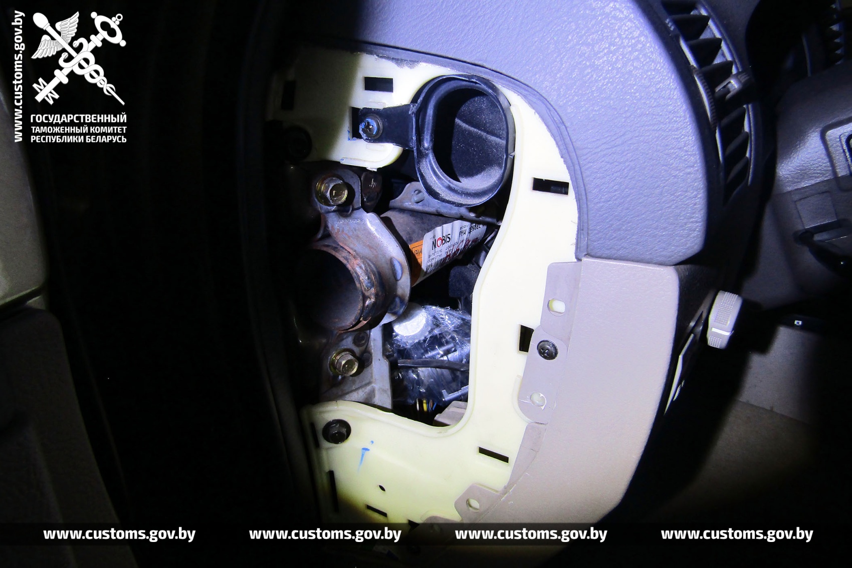 У выніку выяўленыя схованкі з утоенымі таварамі - у падлакотніку паміж сядзеннямі ў адным аўто, у нішы за прыборнай панэллю пад рулявым колам у іншым.