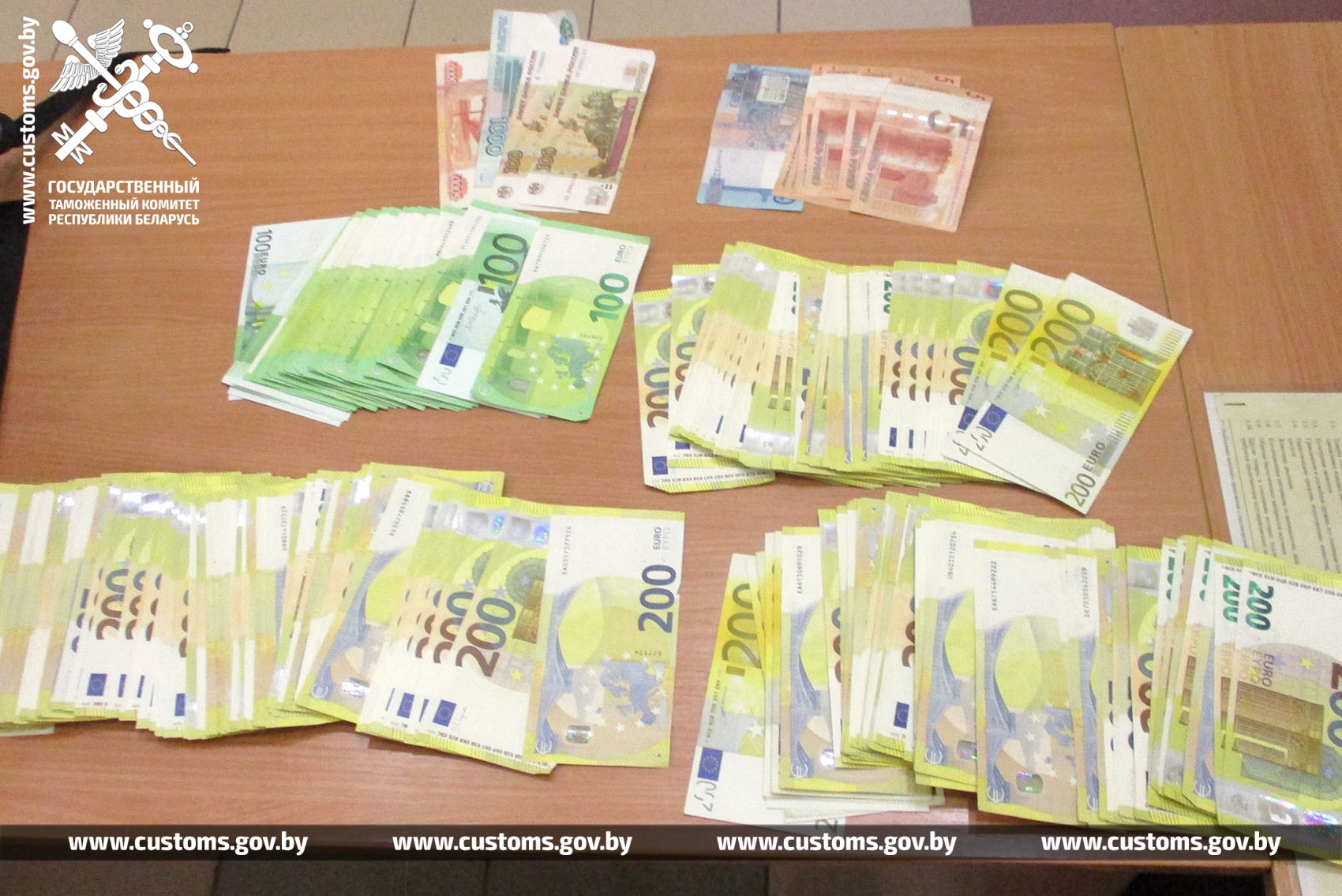 60-гадовы мужчына ехаў чыгуначным паведамленнем «Калінінград-Адлер» праз пункт пропуску «Гудагай». У ходзе вуснага апытання супрацоўніку мытні ён заявіў, што наяўныя грашовыя сродкі не перамяшчае. Аднак пры мытным кантролі ў кішэні курткі, якая знаходзілася на паліцы купэ вагона, было выяўлена звыш 53 тыс.еўра і больш за 6 тыс. расійскіх рублёў.