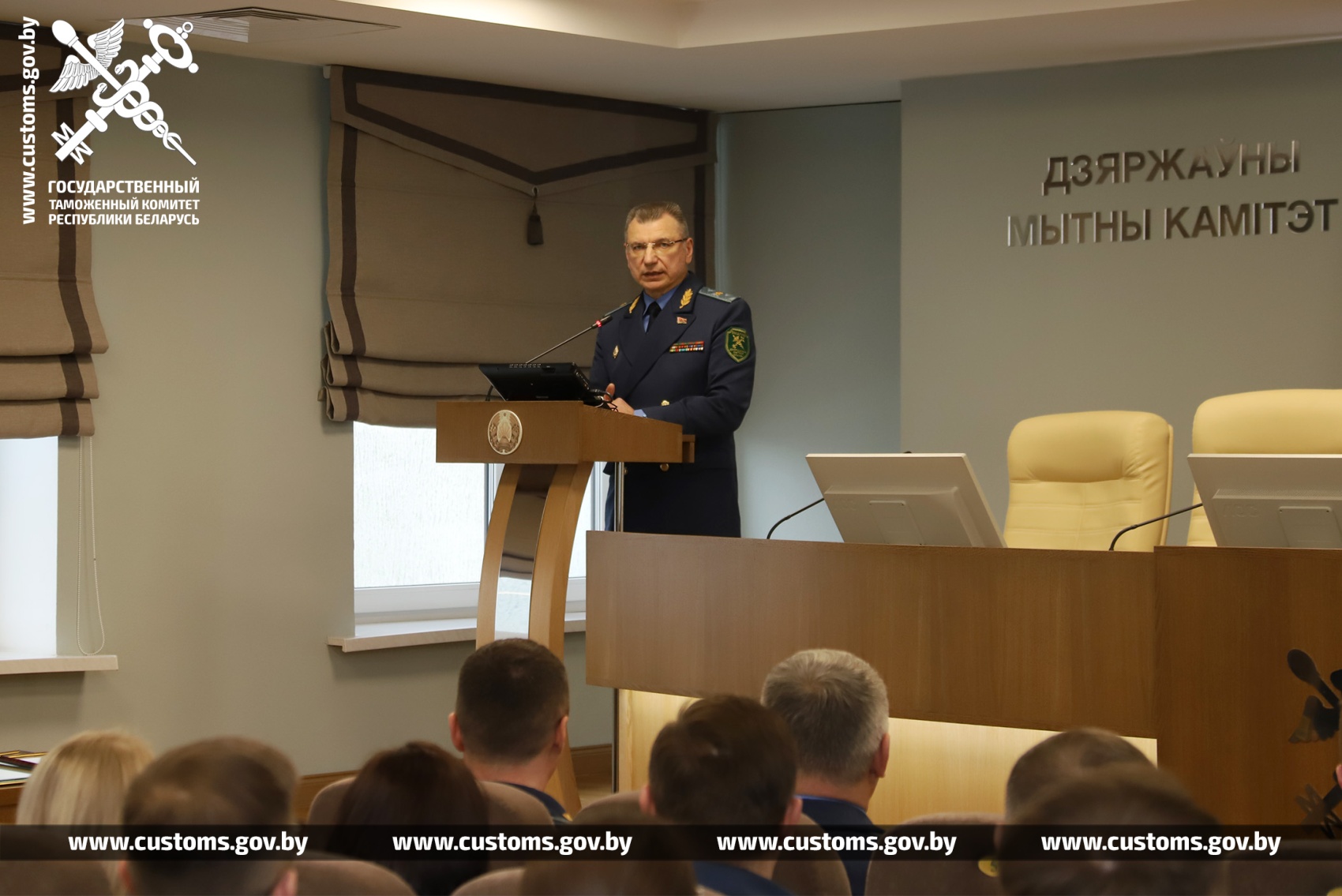 At a solemn meeting at the State Customs Committee, held on the Day of Defenders of the Fatherland and the Armed Forces of the Republic of Belarus, Chairman of the State Customs Committee Vladimir Orlovsky thanked his colleagues for their contribution to ensuring the security of our country and expressed special gratitude to the customs officers who serve on the external borders of our country.
