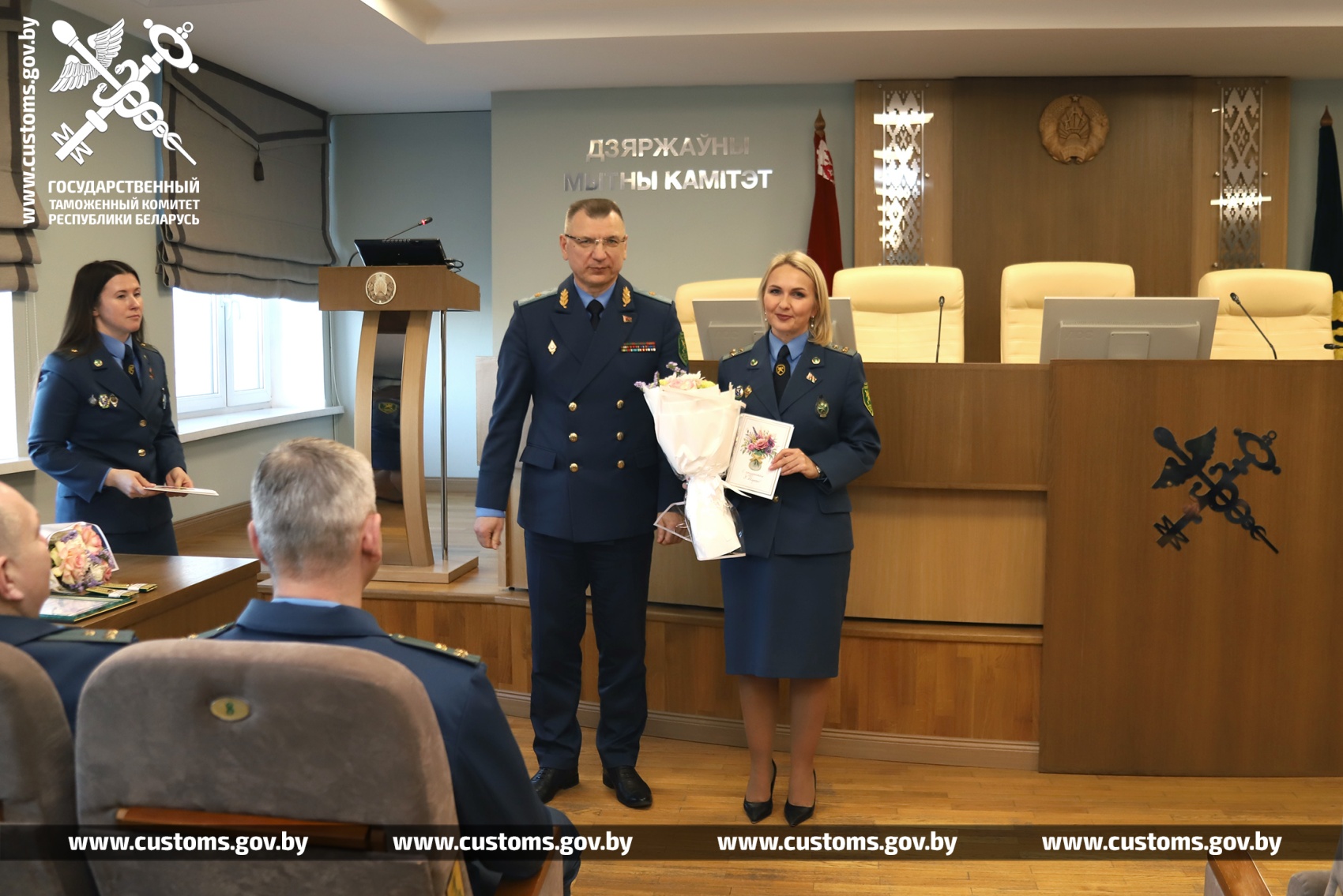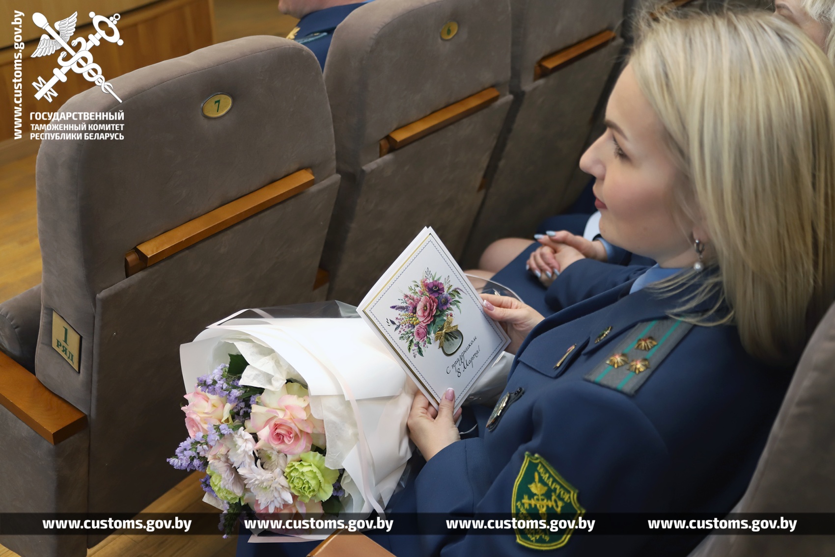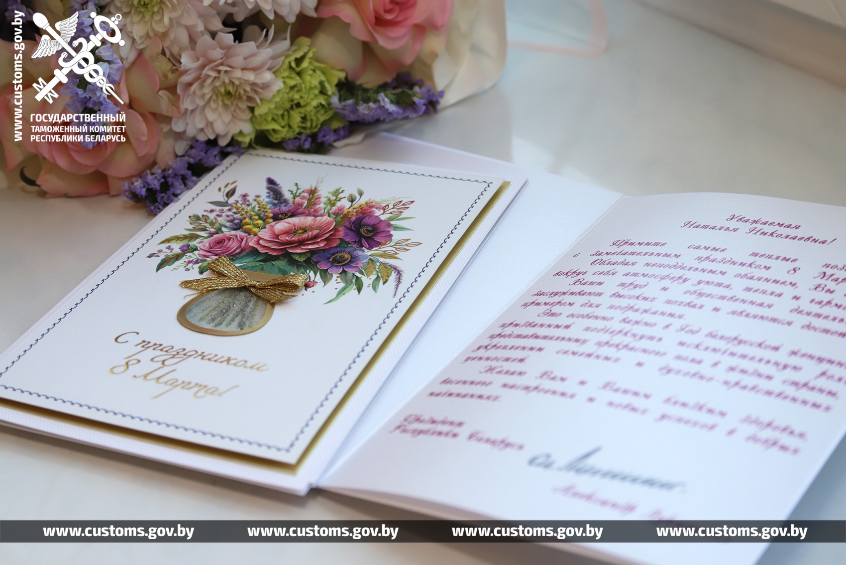 В преддверии Дня женщин сотрудницы Государственного таможенного комитета и Минской центральной таможни удостоены поздравительных открыток от имени Президента Республики Беларусь.