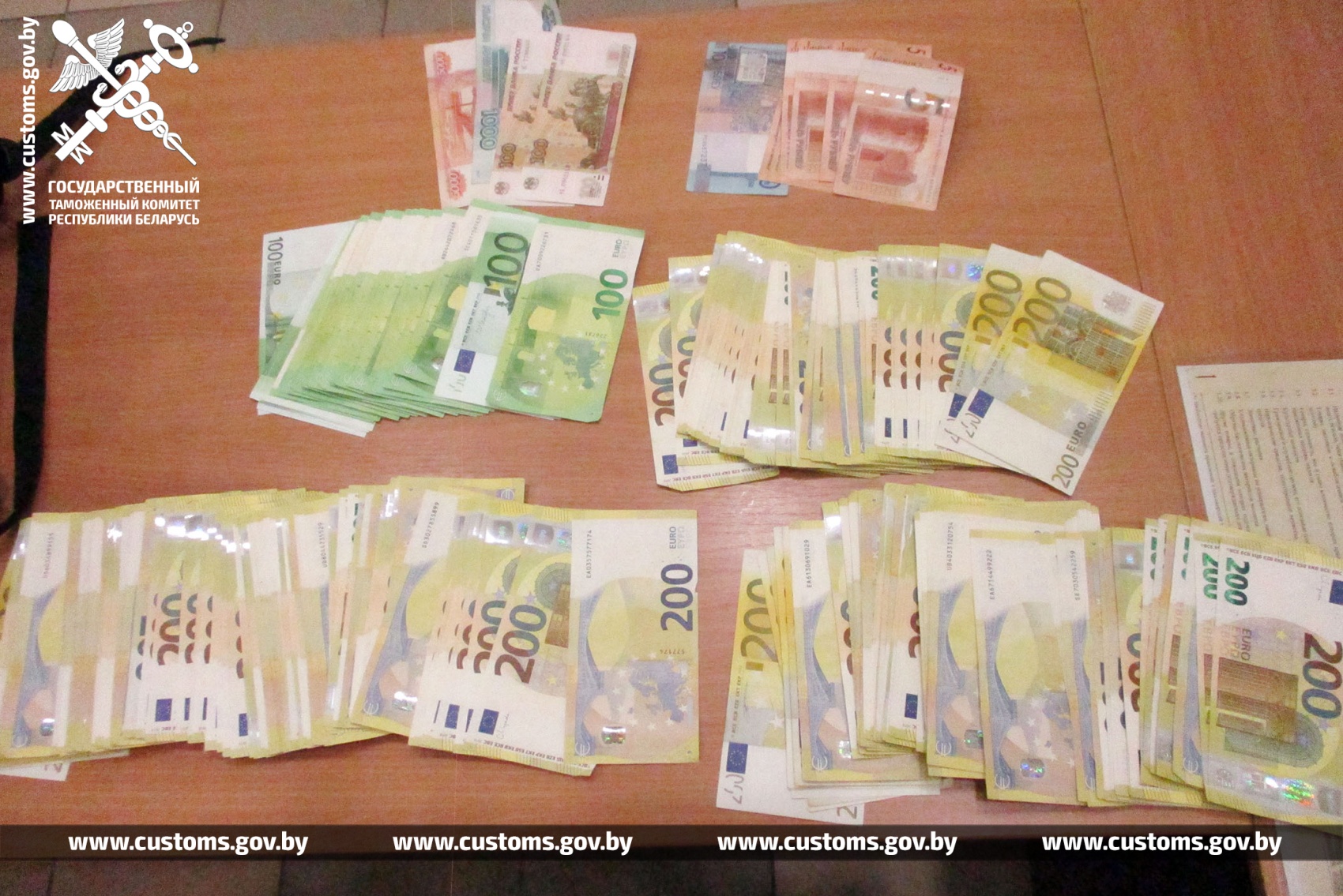 60-гадовы мужчына ехаў чыгуначным паведамленнем «Калінінград-Адлер» праз пункт пропуску «Гудагай». У ходзе вуснага апытання супрацоўніку мытні ён заявіў, што наяўныя грашовыя сродкі не перамяшчае. Аднак пры мытным кантролі ў кішэні курткі, якая знаходзілася на паліцы купэ вагона, было выяўлена звыш 53 тыс.еўра і больш за 6 тыс. расійскіх рублёў.